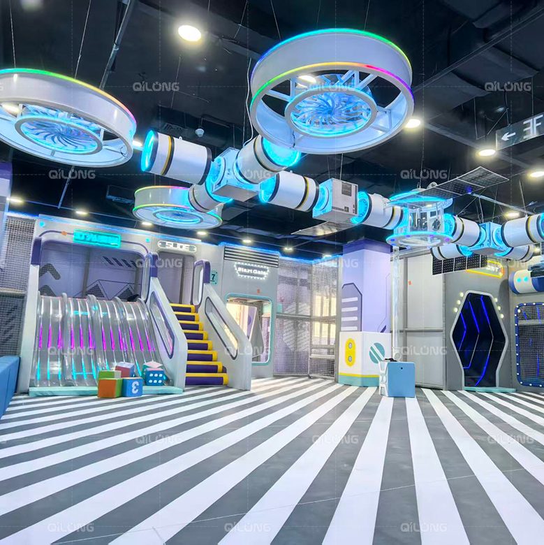 Questo vivace parco giochi al coperto vanta un design futuristico ispirato allo spazio e colori vivaci. È dotato di un'enorme piscina di palline, scivoli a spirale e una giostra girevole.Questi parchi giochi al coperto offrono un'esperienza unica e futuristica, offrendo l'opportunità di liberare la creatività. I genitori sono attratti non solo dal divertimento dei propri figli, ma anche dal desiderio di catturare momenti indimenticabili tra le affascinanti strutture a tema spaziale.